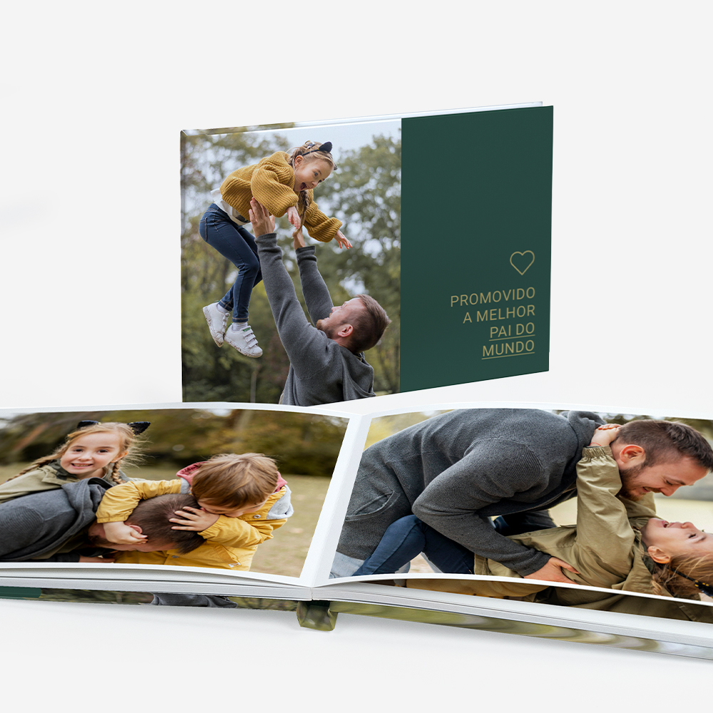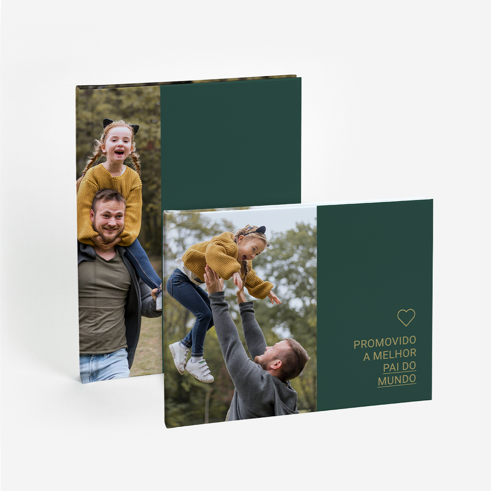 Com dimensões de 17,5 x 22 cm (formato A5), oferece 100% da área da capa e contracapa personalizável para fotos, ilustrações ou textos, criando um produto único.