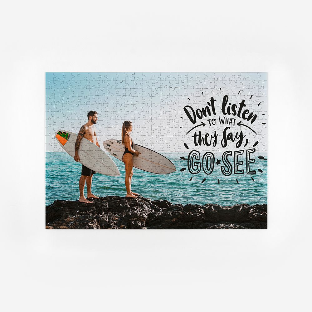 A Dreambooks disponibiliza três formatos diferentes para que possas escolher o tamanho que mais se adequa às tuas fotos e o que mais se enquadra na tua capacidade de montar puzzles. Podes escolher um puzzle de 96 peças, no tamanho 21x29cm, 192 peças, no tamanho 29x42cm, ou 500 peças, no tamanho 33x47cm.